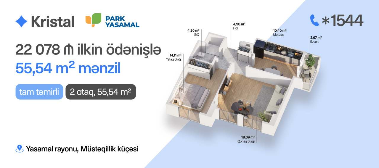 “Kristal”ın “Park Yasamal” layihəsində mənzil satışları 15%-dən başlayan ilkin