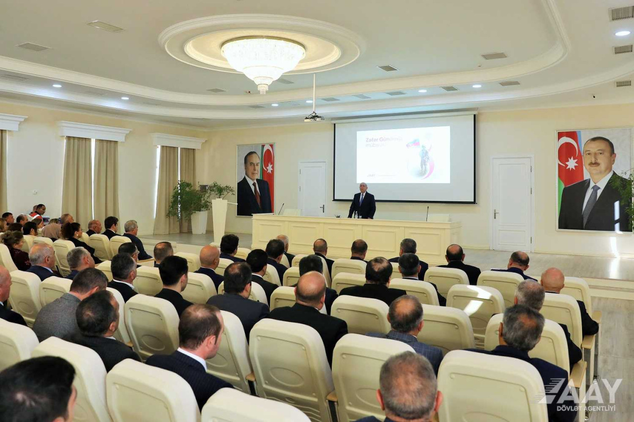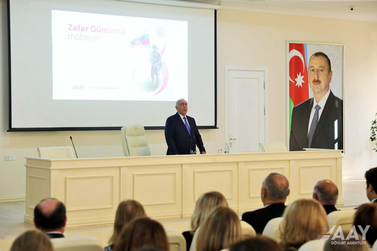 Agentliyin İdarə Heyətinin sədri Saleh Məmmədov çıxış edərək Zəfər Günü münasibətilə Azərbaycan xalqını təbrik edib, şəhidlərimizi hörmətlə anıb, qazilərimizə Allahdan şəfa diləyib. Bildirilib ki, Müzəffər Ali Baş Komandanın rəhbərliyi altında rəşadətli ordumuzun qəhrəmanlığı sayəsində qazanılmış qələbə Azərbaycanın tarixində dərin iz qoyub və hər bir vətəndaşda yüksək milli ruh, həmrəylik hissi formalaşdırıb.