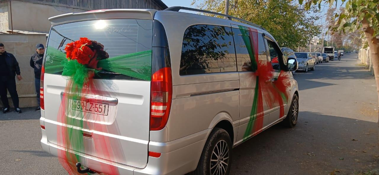 Ailəsi C.Muradlınin cənazəsini daşıyan avtomobili "bəy maşını"na bənzər qırmızı lentlə bəzəyib.