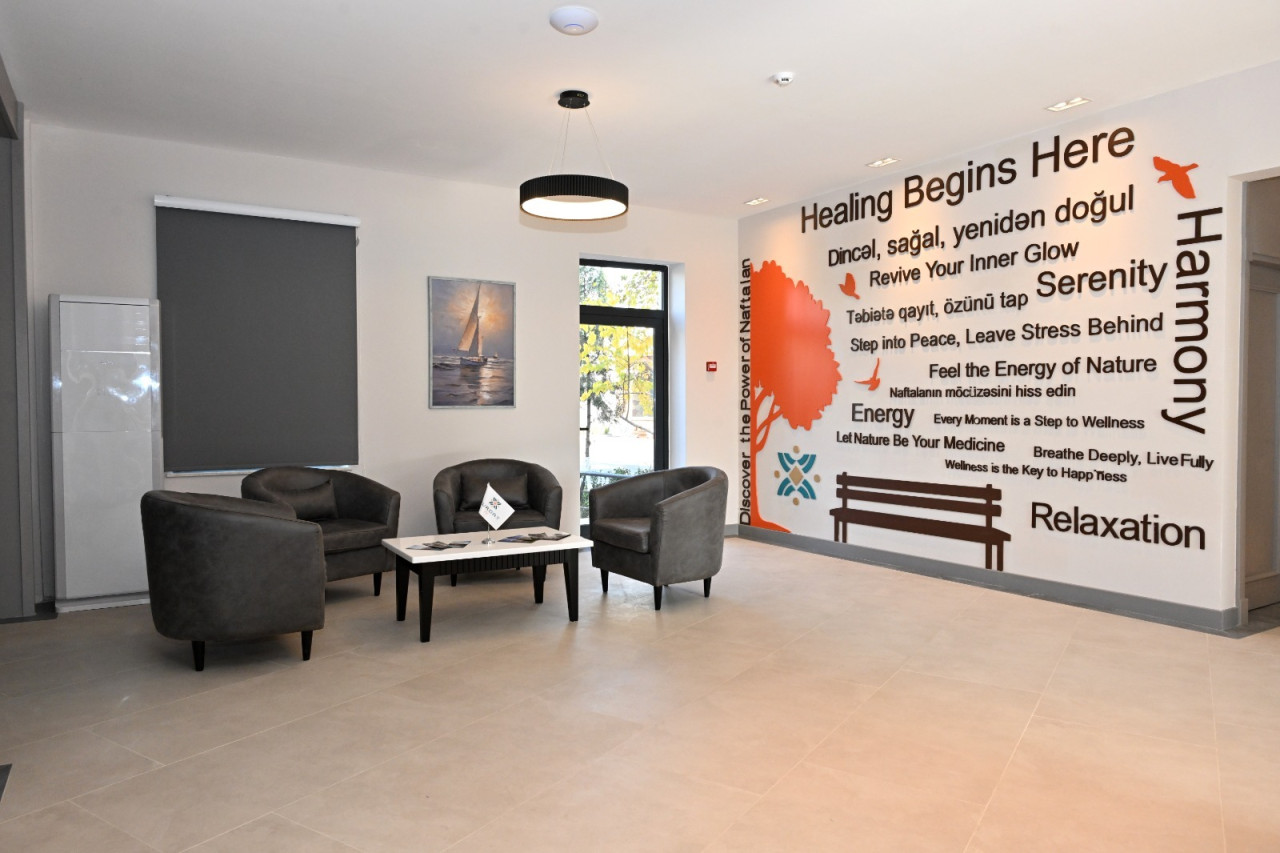 Qeyd edək ki, “Kurort Naftalan”ın müalicə bazası dayaq-hərəkət sistemi və dermatoloji xəstəliklərin müalicəsi üçün müasir - 4-cü nəsil tibbi avadanlıqlarla təmin olunmuş fizioterapiya xidmətlərini, həmçinin müalicəvi naftalan nefti əsasında həyata keçirilən vanna prosedurlarını əhatə edir. Mərkəzin xidmətlərinə naftalan vannaları, kombinə edilmiş naftalan müalicə prosedurları, manual terapiya, parafin terapiyası, su-fizioterapiya (hidroterapiya), inqalyasiya və digər müalicə prosedurları daxildir.