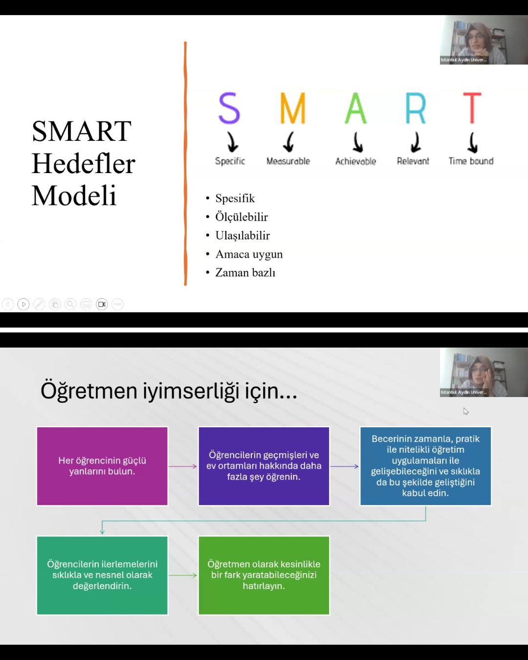 Təlimlər “Təhsil psixologiyası və şagird motivasiyası”, “Təhsil prosesində qiymətləndirmənin yeni yanaşmaları”, “Effektiv dərs planlaşdırılması və vaxtın idarə edilməsi”, “Təhsildə tətbiq olunan süni intellekt dəstəkli texnoloji materiallar” mövzularını əhatə edib. Sessiyalar İstanbul Aydın Universitetinin təcrübəli müəllimləri — Vildan Saruhan, Sözer Kırca, Buket Karadağ və Devran Korkmaz tərəfindən aparılıb.