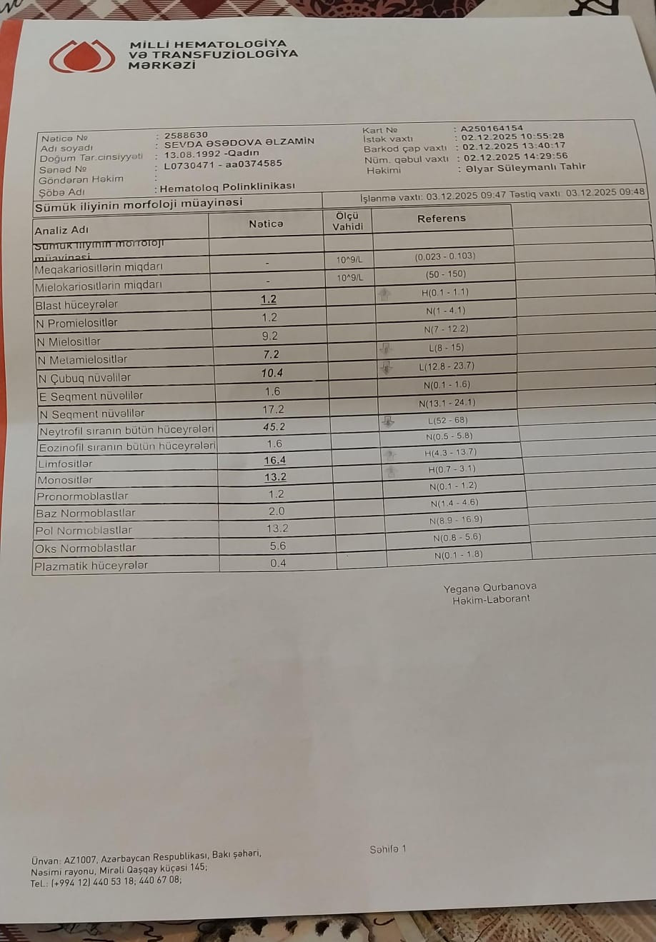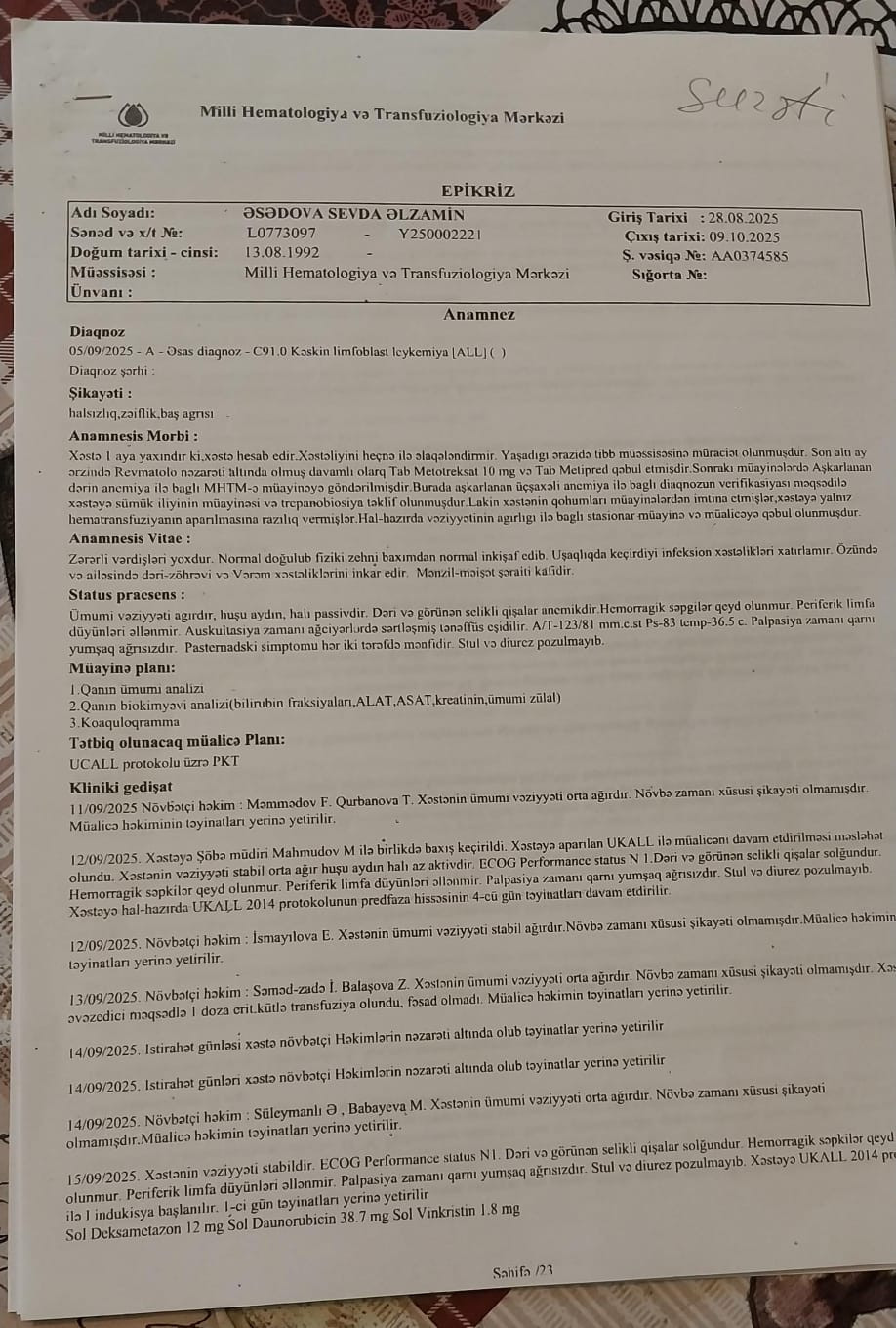 Manset.az xəbər verir ki, o, kəskin limfoblast leykemiya xəstəliyindən əziyyət çəkir. Ailəsinin maddi vəziyyəti yaxşı deyil, buna görə də, onun müalicəsi üçün tələb olunan məbləği təmin edə bilmirlər.