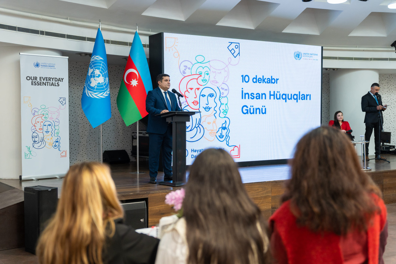 Mərasimdə açılış nitqi ilə çıxış edən BMT-nin Rezident Əlaqələndiricisinin Ofisinin rəhbəri Kanako Mabuçi günün əhəmiyyətindən və insan hüquqlarının qorunmasının vacibliyindən danışıb.