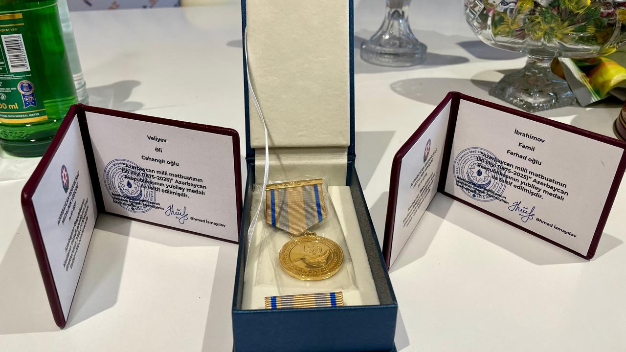 Tanınmış jurnalistlər Əli Vəliyev və Famil Fərhadoğlu bu medala layiq görülüblər.