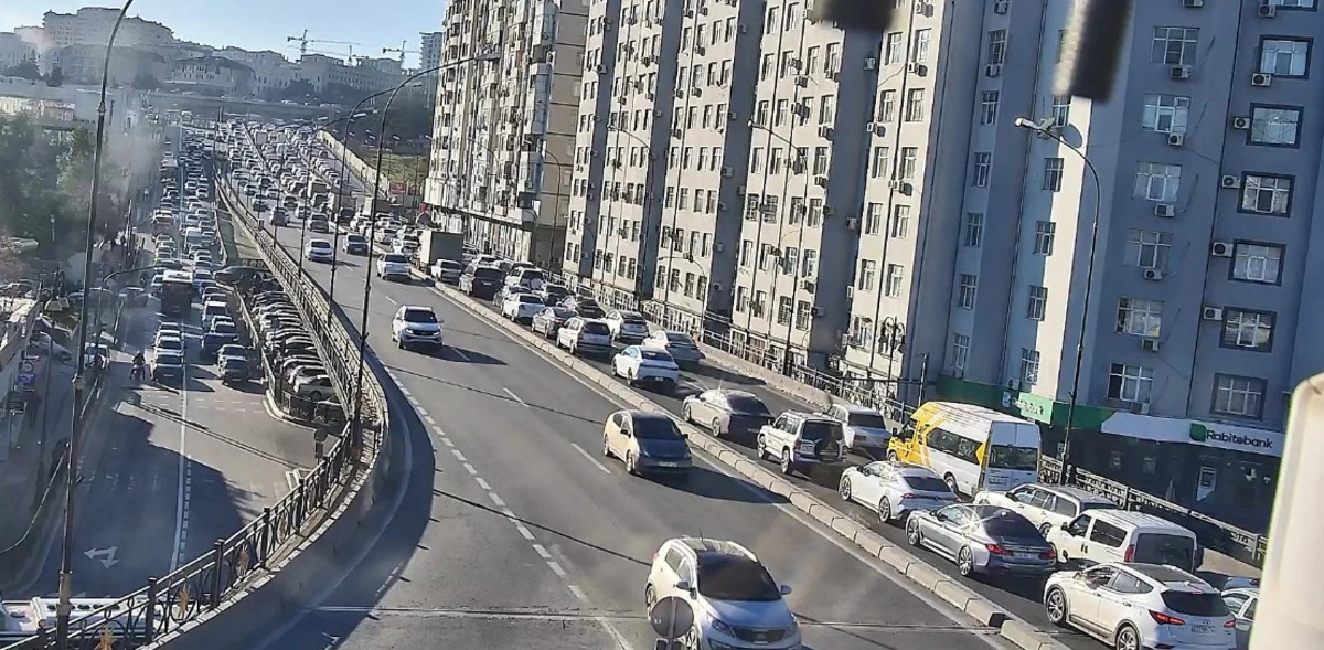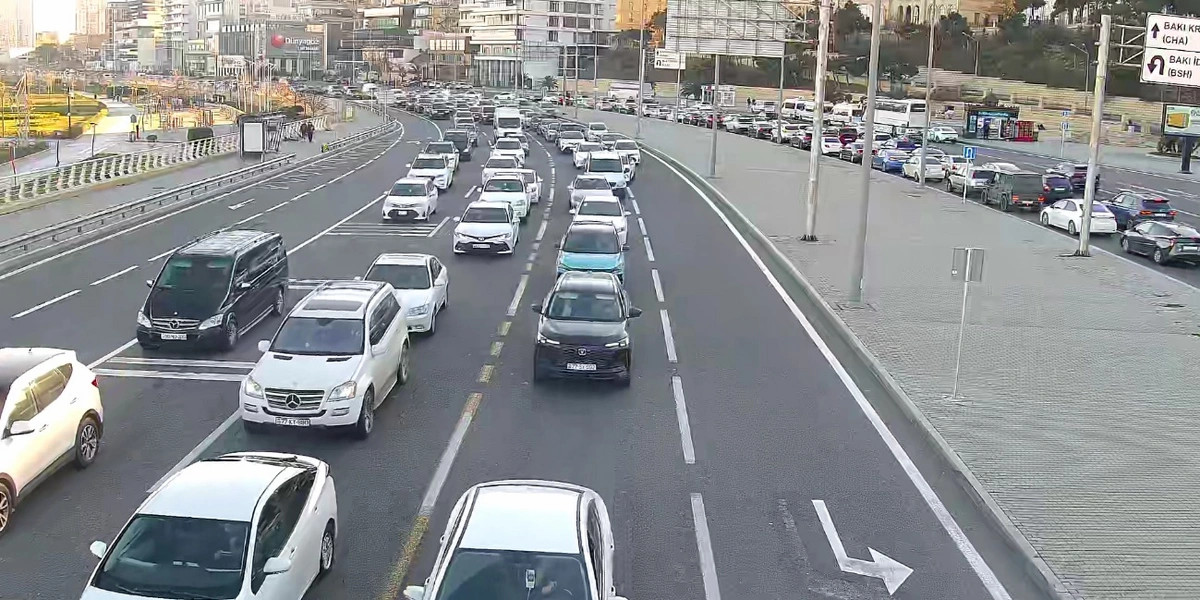 Bakının bir sıra yollarında nəqliyyatın sıxlığı yaranıb.