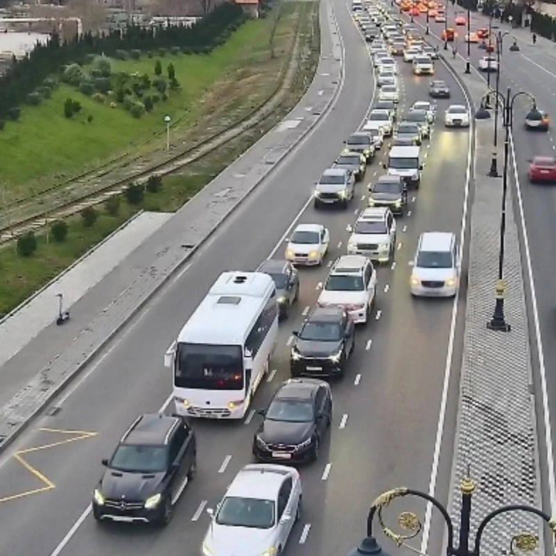 Bakının bir sıra yollarında nəqliyyatın sıxlığı müşahidə olunur.