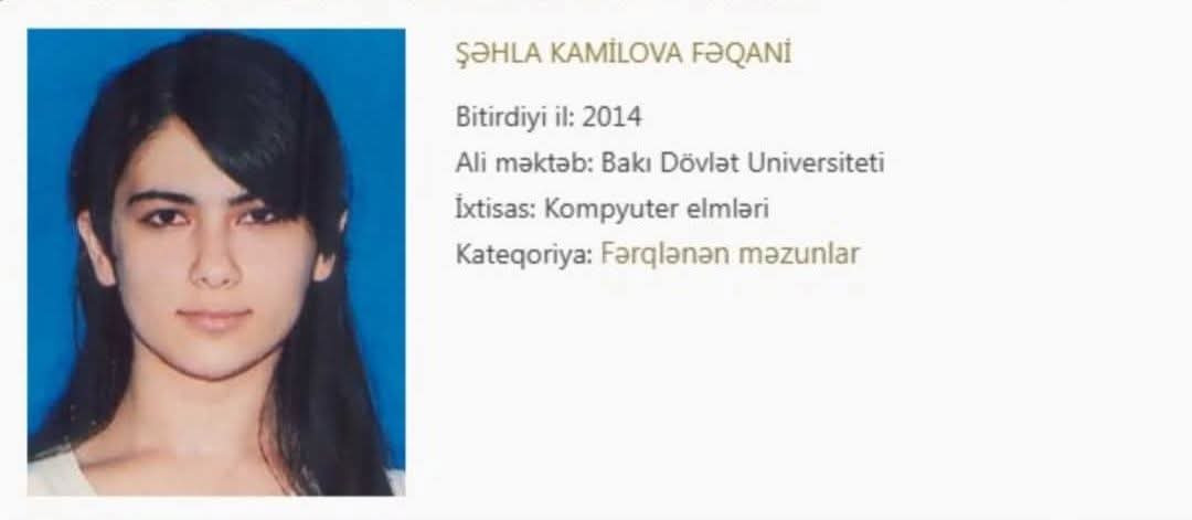 Manset.az xəbər verir ki, odlu silahdan açılan atəş nəticəsində yaralanan 1997-ci il təvəllüdlü Şəhla Fəqani qızı Kamilova Bakı Dövlət Universitetinin məzunudur.