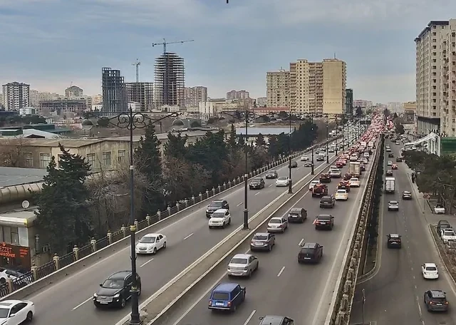 Bakının bir sıra yollarında nəqliyyatın sıxlığı müşahidə olunur.