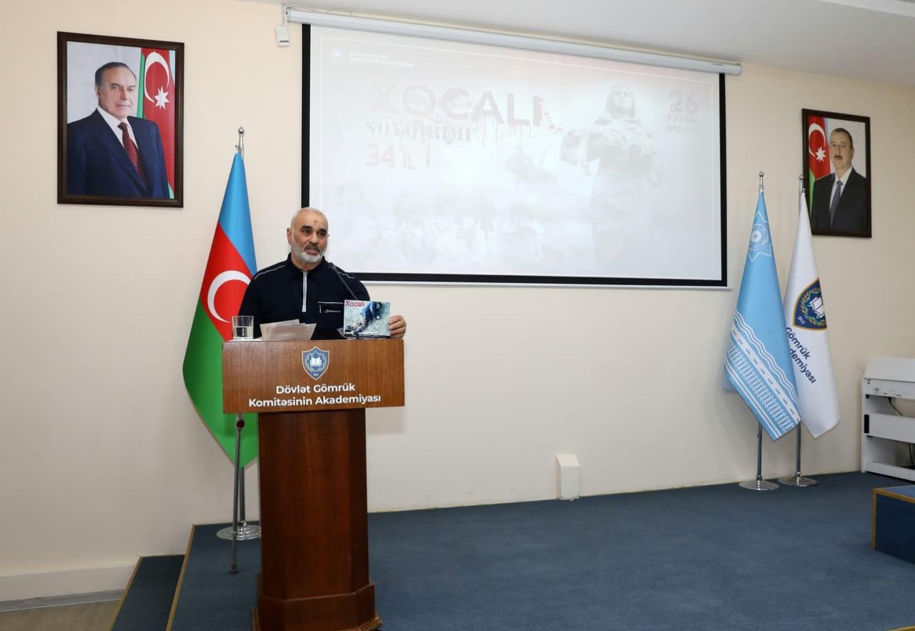 Dövlət Gömrük Komitəsinin Akademiyasının rəisi, gömrük xidməti general-mayoru Qulu Novruzov çıxış edərək Xocalı soyqırımının Azərbaycan tarixinin ən faciəli səhifələrindən biri olduğunu bildirib, soyqırımı aktının yalnız xalqımıza deyil, bəşəriyyətə qarşı törədilmiş cinayət olduğunu vurğulayıb. Müzəffər Ali Baş Komandan İlham Əliyevin rəhbərliyi ilə qazanılan şanlı qələbədən sonra soyqırımı qurbanlarının qisasının alındığı, Xocalıda Azərbaycan bayrağının ucaldıldığı qeyd olunub.