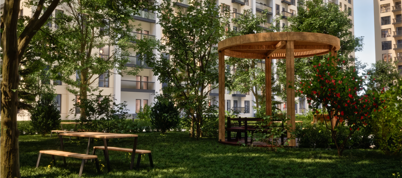 Həmçinin kompleksin həyətində geniş park zonası, uşaq meydançası və istirahət üçün sahələr nəzərdə tutulub. Yaxınlıqda bağça, məktəb və müxtəlif iaşə obyektləri yerləşir. Şoseyə və metro stansiyalarına yaxınlıq isə ictimai nəqliyyatdan rahat istifadə imkanı yaradır. Sakinlərin rahatlığı və təhlükəsizliyi üçün yeraltı dayanacaq, xüsusi mühafizə xidməti və kamera-nəzarət sistemi təmin olunacaq. Mənzillər isə sakinlərə tam təmirli və çıxarışlı şəkildə təhvil veriləcək
