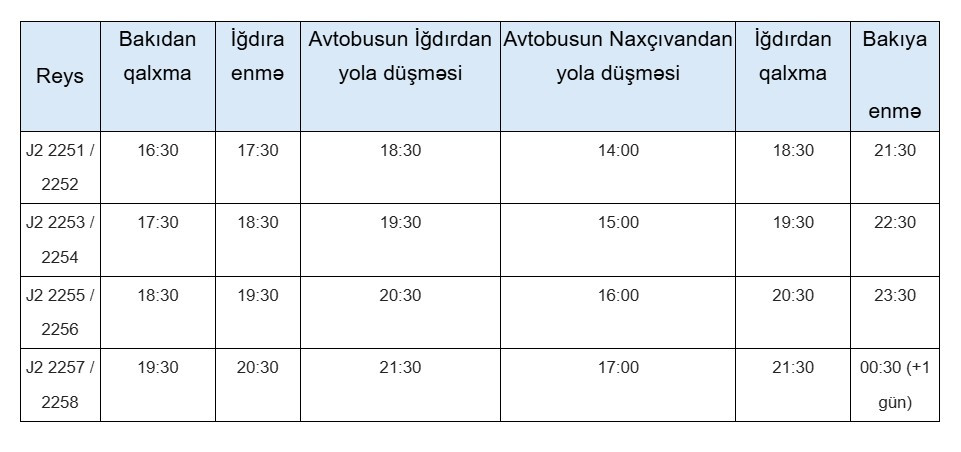Qeyd olunub ki, mövcud vəziyyət nəzərə alınaraq Azərbaycan vətəndaşlarının Bakı ilə Naxçıvan arasında alternativ nəqliyyat əlaqəsindən istifadə edə bilmələri üçün AZAL-ın Bakı-İğdır-Bakı marşrutu üzrə növbəti uçuş cədvəli hazırlanıb.