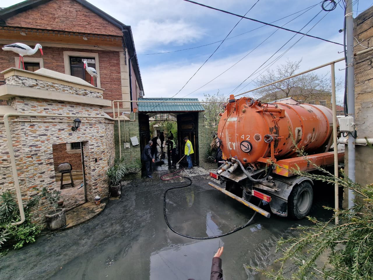 Keşlə qəsəbəsində kollektorun daşması nəticəsində yaranmış fəsadlar aradan qaldırılır.