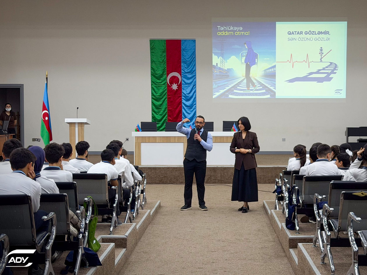 “Azərbaycan Dəmir Yolları” QSC dəmir yolu ətrafında yerləşən məktəblərdə təhlükəsizlik mədəniyyətinin formalaşdırılması istiqamətində fəaliyyətini davam etdirir.