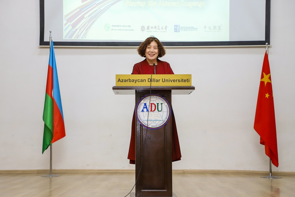 Tədbirdə çıxış edən Çin Xalq Respublikasının Azərbaycandakı səfiri xanım Lu Mey tədbiri hazırlayan ADU-nun müəllim və tələbələrinə səfirlik adından minnətdarlığını bildirib, Beynəlxalq Çin Dili Gününün yaranma tarixindən danışıb. Bildirilib ki, son illər Prezident Si Cinpin və Prezident İlham Əliyevin strateji rəhbərliyi altında Çin-Azərbaycan əlaqələri hərtərəfli strateji tərəfdaşlıq səviyyəsinə yüksəlib. İki ölkə arasında iqtisadi-ticarət əməkdaşlığı durmadan genişlənib, dostluğumuz daha da dərinləşib.