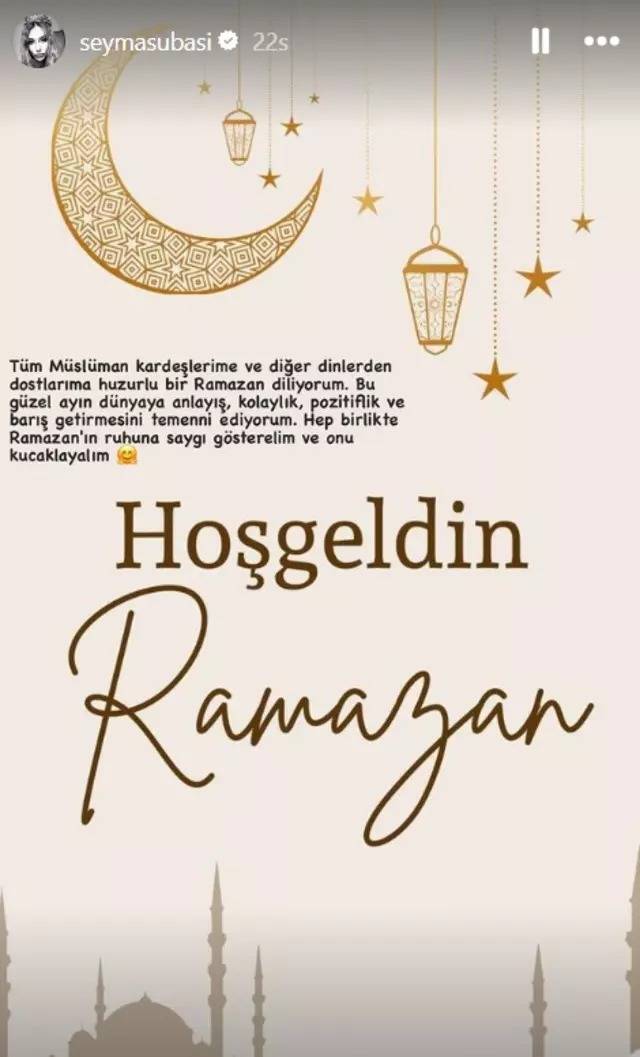Türkiyəli internet fenomeni Şeyma Şubaşı 2,8 milyon izləyicisi olan İnstaqram hesabının hekayələr bölməsində Ramazanla bağlı paylaşım edib.