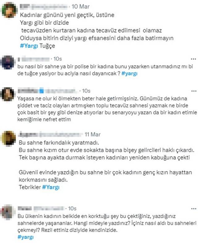 Qısa zamanda serialın ssenari müəllifi Səma Ergenekon sosial mediada gündəm olub. İstifadəçilər “Bu səhnəni yazanda utandınmı?”, “Bu səhnə maarifləndirmək əvəzinə bir çox qadını qorxutdu”, “Utanmaz birdə detallarla çəkilib” kimi şərhlər yazılıb.