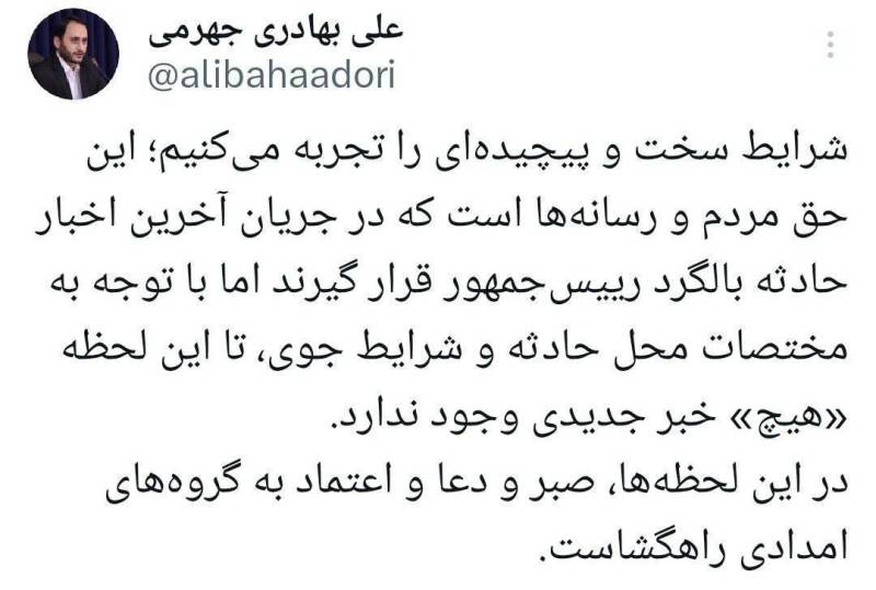 “İran Prezidenti, qardaşım İbrahim Rəisi və onun rəhbərlik etdiyi nümayəndə heyətinin helikopter qəzası keçirməsi bizi çox kədərləndirdi”.