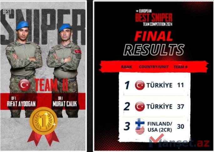Avropanın Ən Yaxşı Snayper Komandası Yarışmasında Türkiyə Quru Qoşunları komandası 1-ci, Türkiyə Xüsusi Təyinatlı Qüvvələri komandası isə 2-ci yerdə qərarlaşıb.