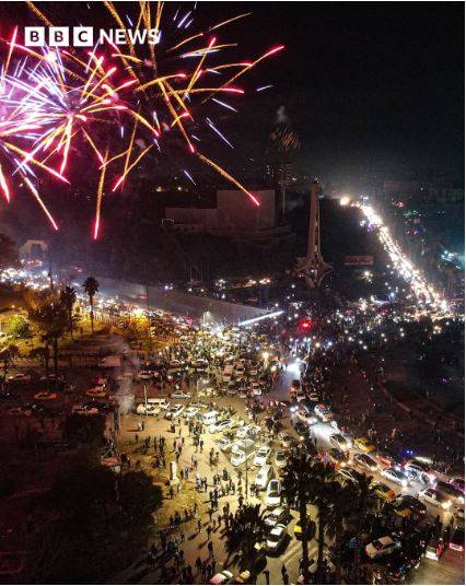 54 ildən sonra ilk dəfə Yeni ili Əsəd rejimi olmadan qeyd edən suriyalılar üçün meydanda musiqili proqram və atəşfəşanlıq təşkil edilib.