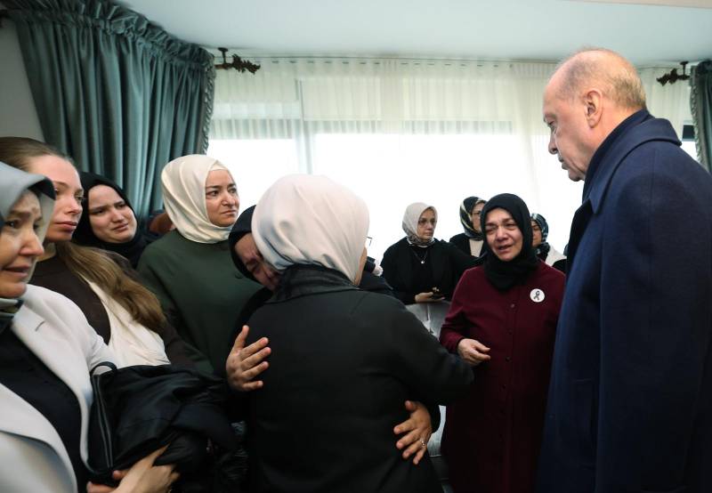 Manset.az xəbər verir ki, o, və xanımı Əminə Ərdoğan yanğın zamanı həlak olan “Türk Hava Yolları”nın işçisi Zehra Sena Gültekinin ailəsini ziyarət edib.