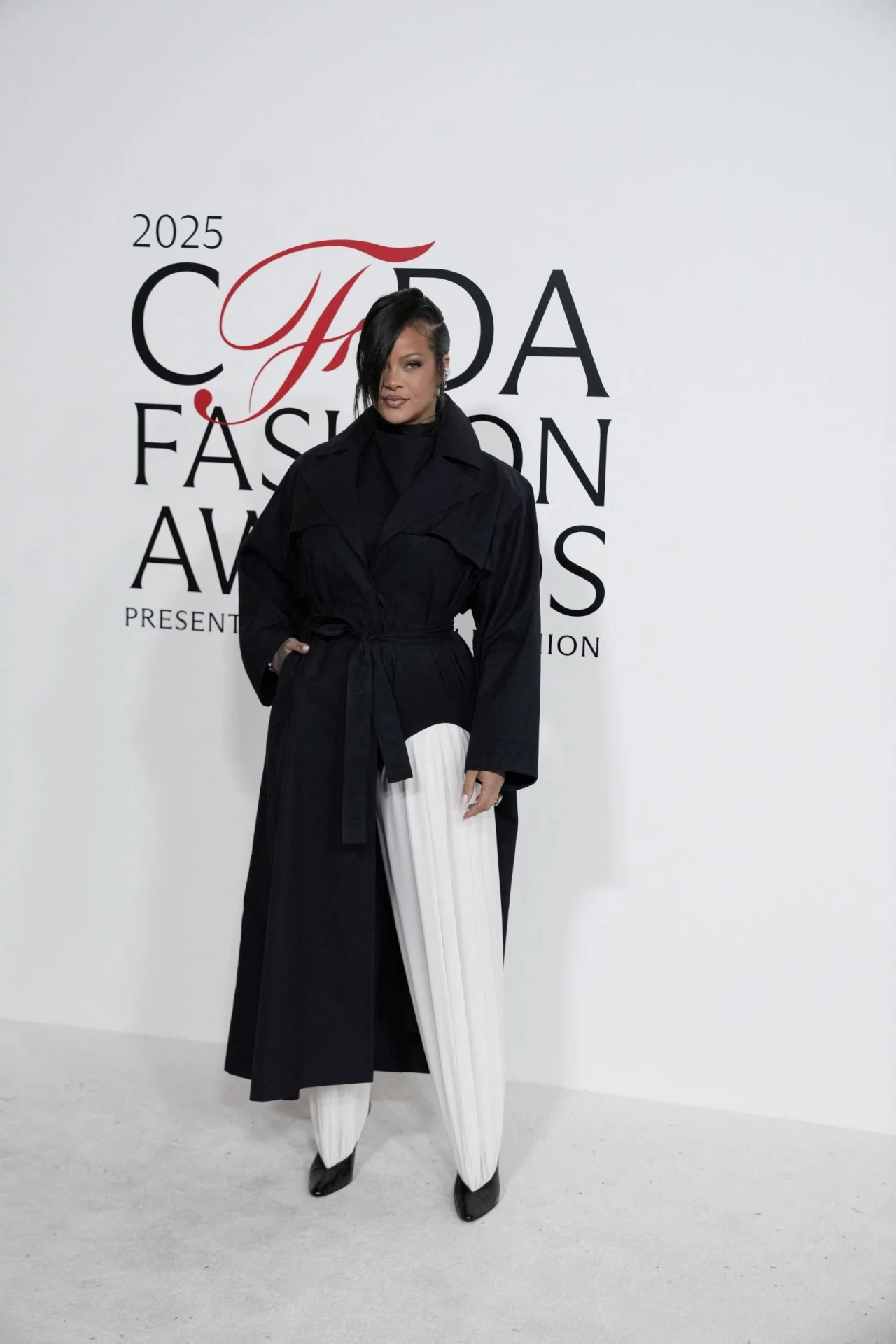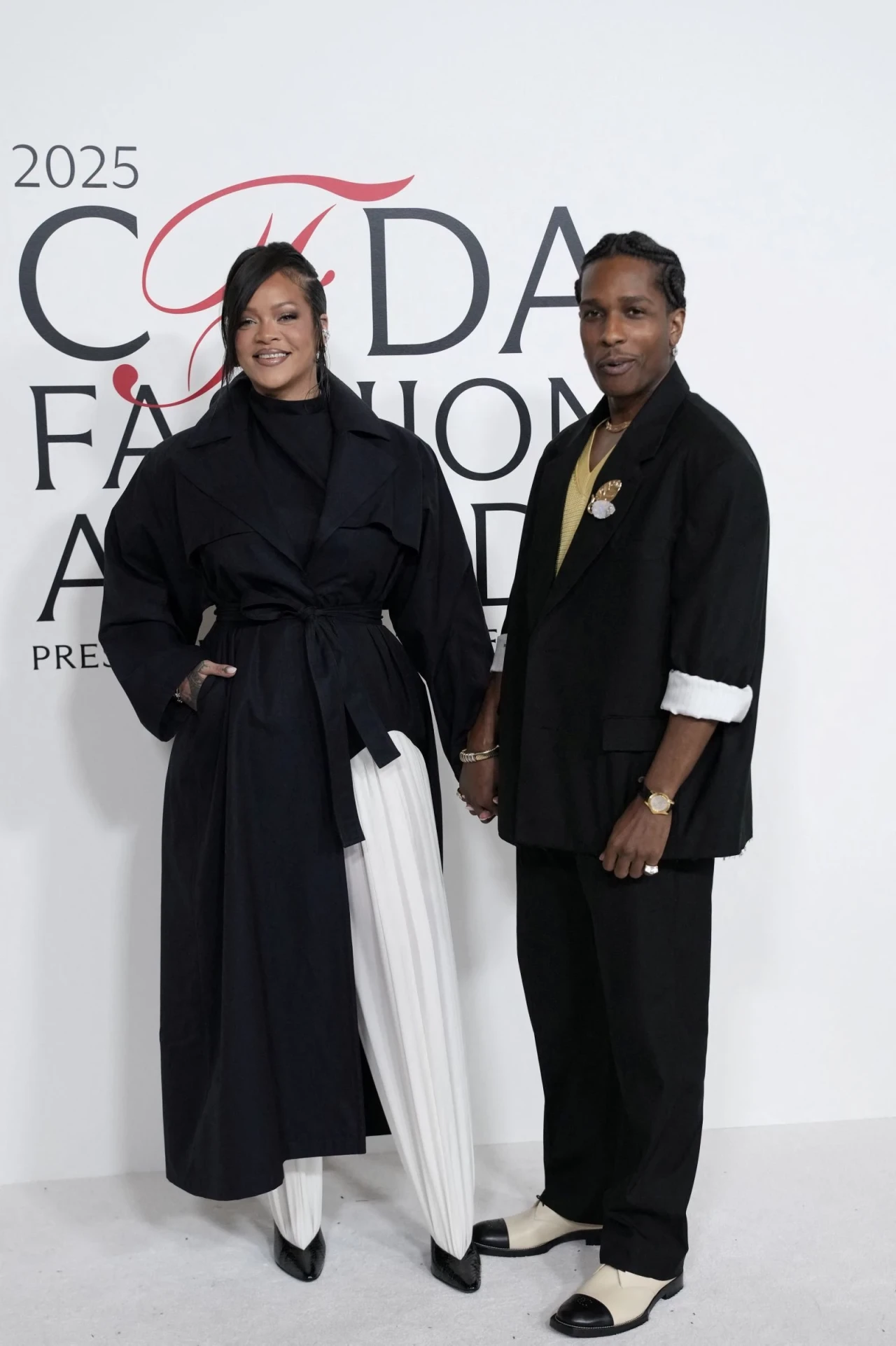 Manset.az xarici mediaya istinadən xəbər verir ki, Rihanna, üçüncü uşağını dünyaya gətirdikdən sonra ilk dəfə olaraq qırmızı xalıda göründü. O, həyat yoldaşı A$AP Rocky ilə birlikdə New Yorkda keçirilən CFDA Fashion Awards 2025 gecəsində iştirak edərək gecənin ən çox danışılan cütü oldu. Məşhur ulduz, mavi Alaïa paltoyu, ağ pliseli şalvarı və parlaq qara ayaqqabıları ilə zərif bir görünüş sərgilədi. Saçlarını ön tərəfdən, kahkül formasında topladı və makiyajında isə təbii görünüşü üstün tutdu.