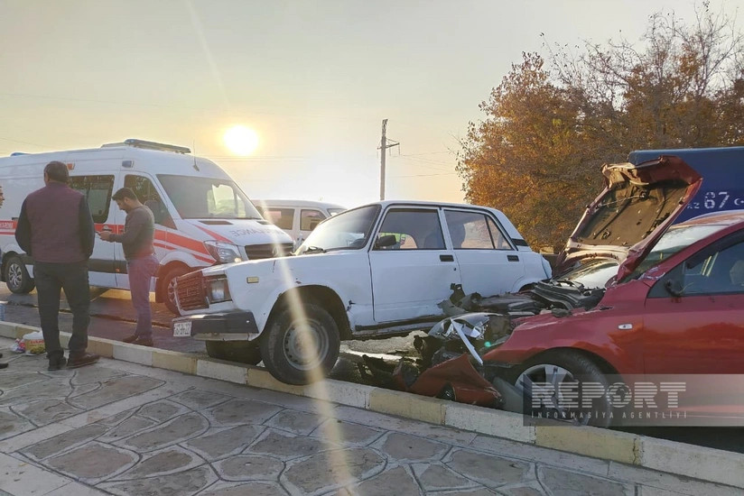"VAZ 2107" və "KIA" markalı avtomobillərin toqquşması nəticəsində 4 nəfər xəsarət alıb.