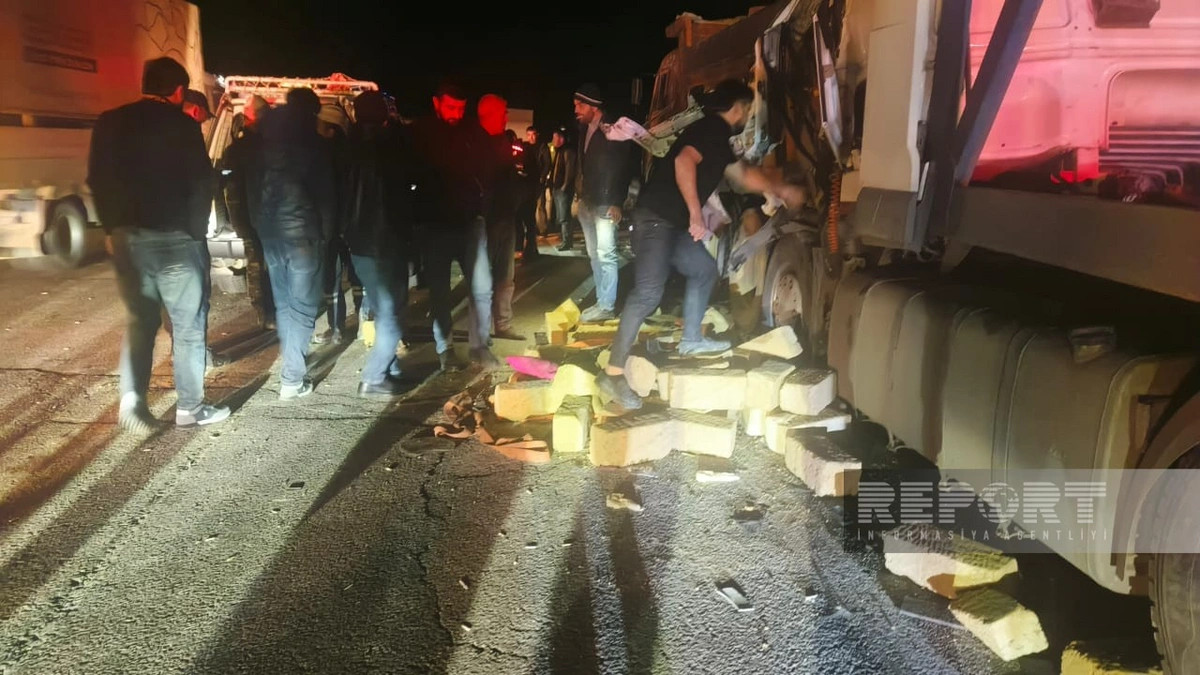 Belə ki, "DAF" markalı yük maşını qarşısında hərəkət edən digər yük avtomobili "KAmaz"a çırpılıb.