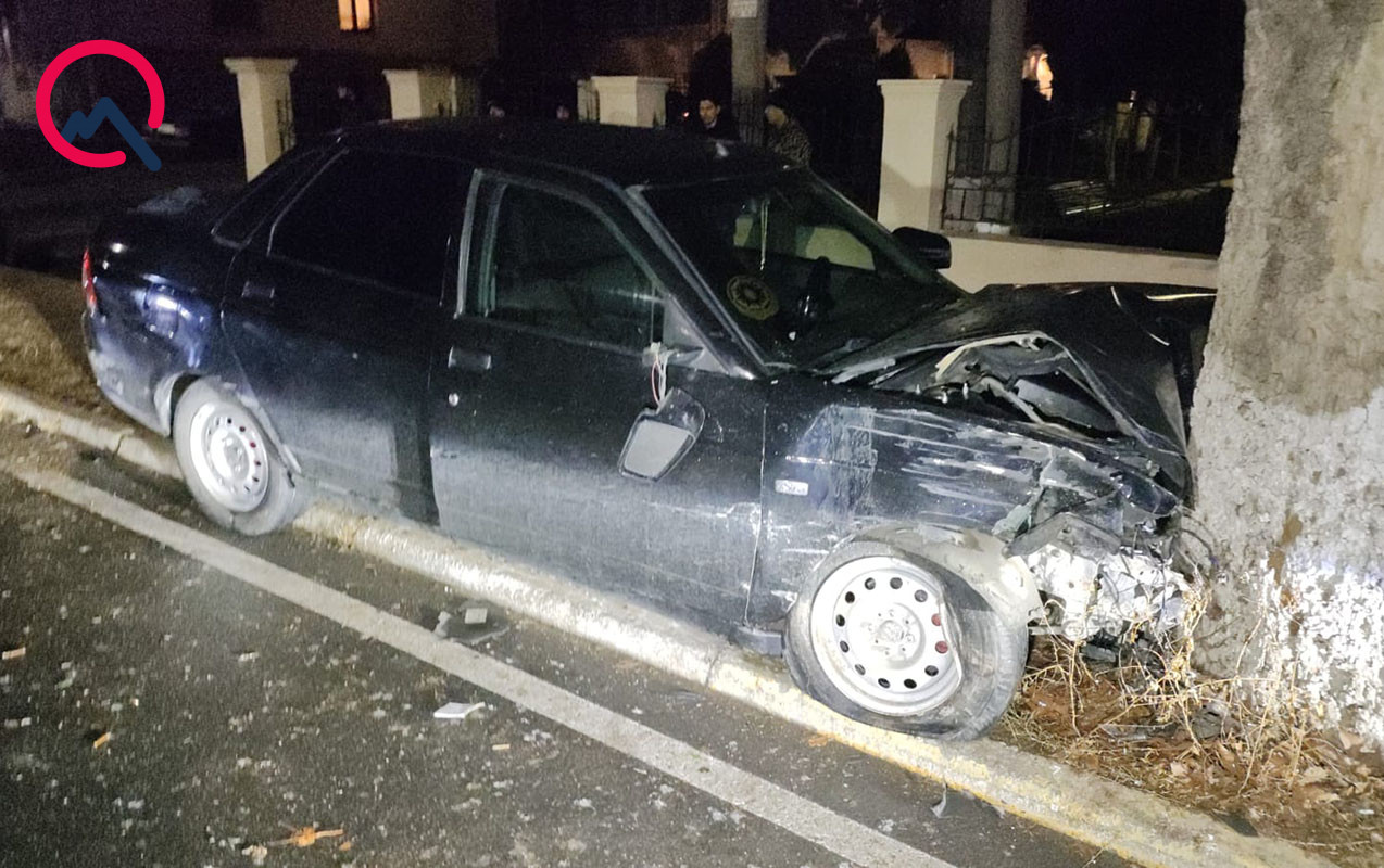Zərbənin təsirindən “Lada” markalı maşın ağaca çırpılıb.