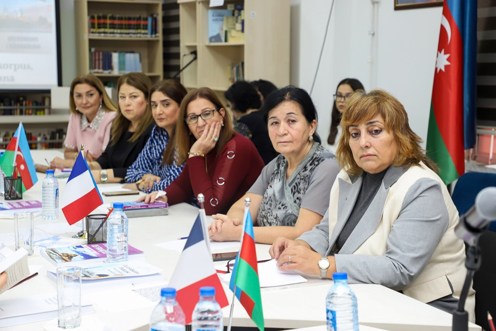 ADU-nun Fransız dilinin leksikologiyası və üslubiyyatı kafedrasının müdiri, professor Gülnarə Sadıxova giriş sözü ilə tədbiri açıq elan edib.
