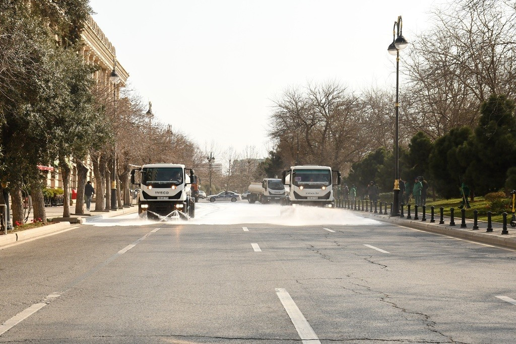 Bakı Şəhər İcra Hakimiyyətinin Mətbuat Xidmətindən Manset.az-a verilən məlumata görə, bu gün səhər saatlarından etibarən Bakı Şəhər İcra Hakimiyyətinin kommunal təsərrüfat xidmətlərinin texnikası tərəfindən şəhərin 537 əsas küçə və prospektlərin yuyucu maddələrlə yuyulmasını təmin edilib.