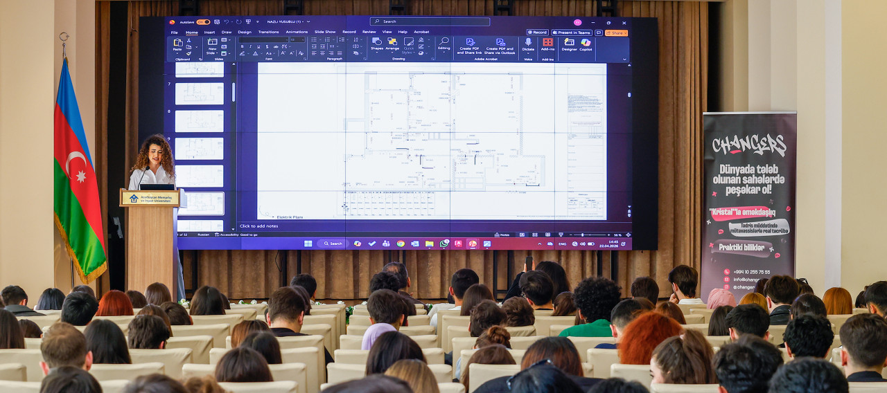 Azərbaycan Memarlıq və İnşaat Universitetində “Changers Academy” tərəfindən təşkil olunan təqdimat çərçivəsində tələbələr memarlıq və tikinti sahəsində müasir trendlər, innovativ yanaşmalar və karyera imkanları ilə tanış olublar. Tədbir “Kristal“ tikinti şirkətinin  tərəfdaşlığı ilə həyata keçirilib.
