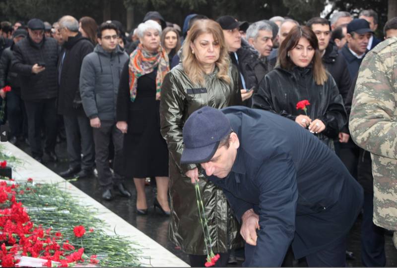 Manset.az xəbər verir ki, şəhidlərin məzarları üzərinə gül dəstələri düzülüb, əbədi məşəl kompleksinin önünə əklil qoyulub.