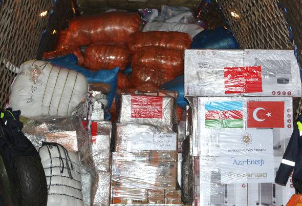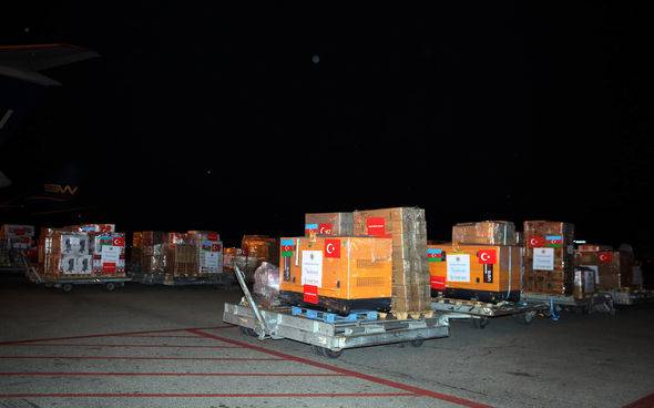 Manset.az xəbər verir ki, sözügedən humanitar yardıma faciədən zərərçəkmiş şəxslər üçün zəruri olan əlavə avadanlıqlar, o cümlədən qızdırıcısı olan çadırlar, generatorlar, istilik radiatorları, çöl üçün qızdırıcılar, dizel yanacaqlı sobalar, həmçinin axtarış-xilasetmə işlərinə dəstək məqsədi ilə ləvazimat və avadanlıqlar daxildir.