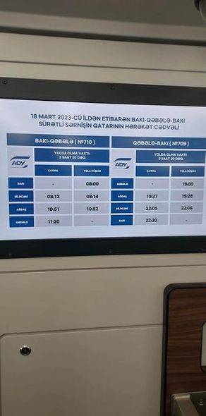 Belə ki, Bakı-Qəbələ və əks istiqamətdə qatarın yolda olma müddəti 3 saat 20 dəqiqə olaraq göstərilib.