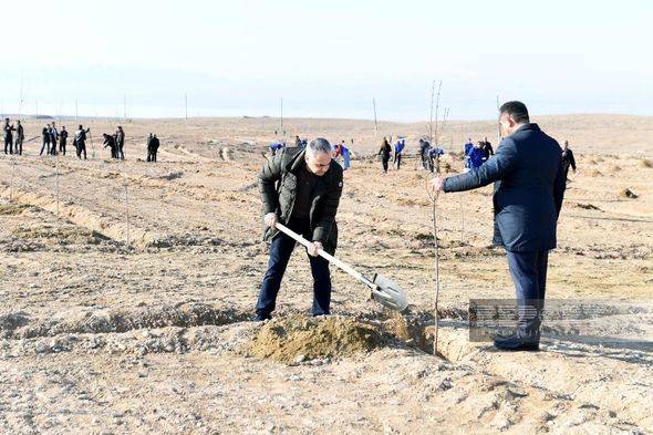 Aksiya zamanı 1500 badam tingi və 600 üzüm kolu əkilib.