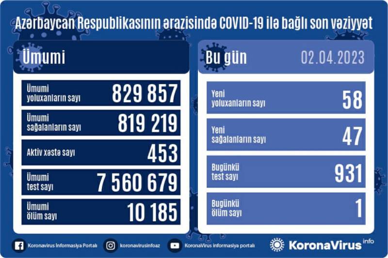 Azərbaycanda son sutkada koronavirus infeksiyasına 58 yeni yoluxma faktı qeydə alınıb, 47 nəfər müalicə olunaraq sağalıb.