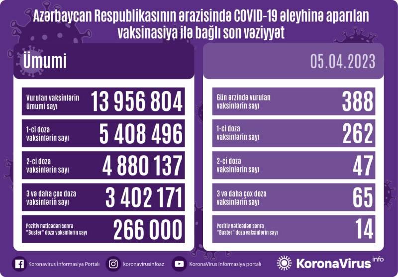 Azərbaycanda son sutkada koronavirus (COVID-19) əleyhinə 388 vaksin vurulub.