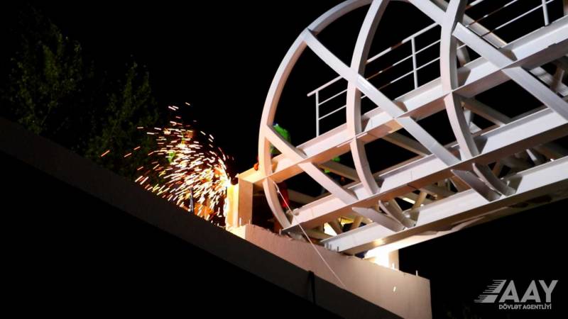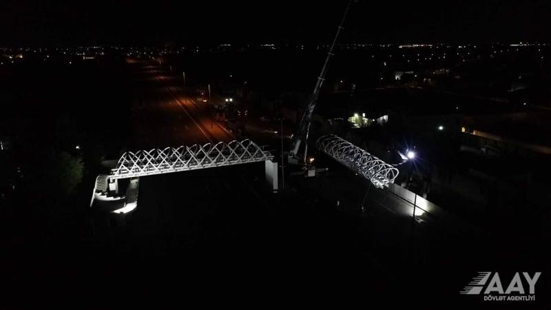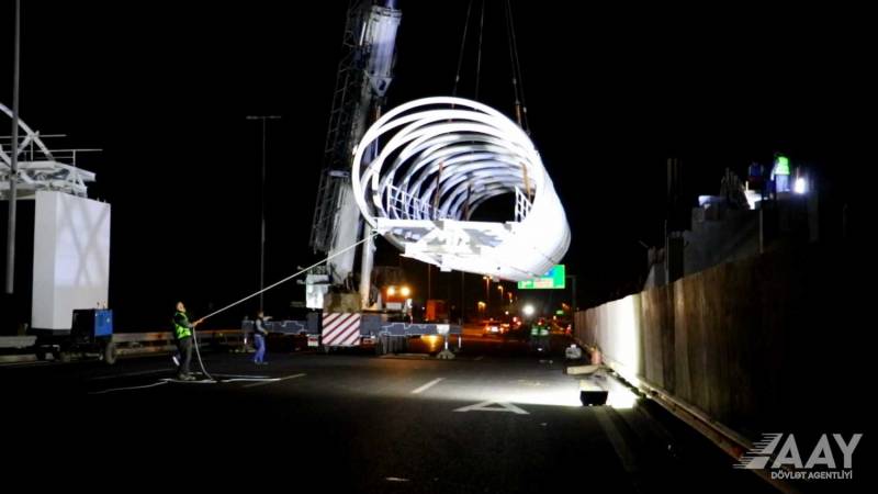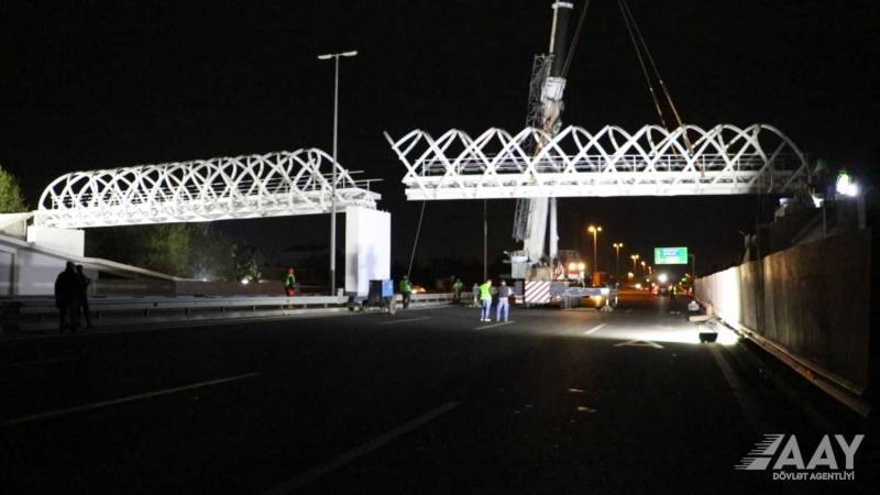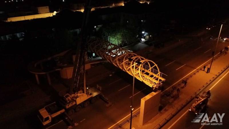 Manset.az xəbər verir ki, layihəyə uyğun olaraq gecə saatlarında keçidin aşırım hissəsinin quraşdırılması həyata keçirilib.