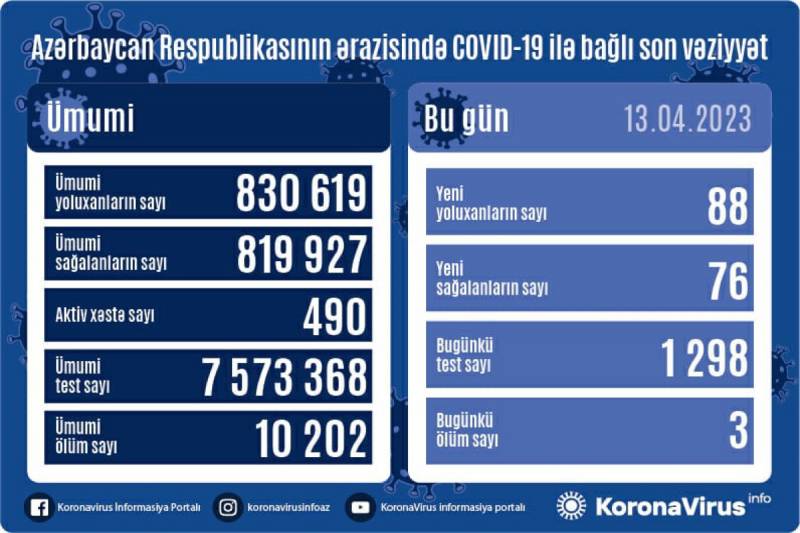 Vurulan vaksinlərin ümumi sayı 13 958 032, birinci mərhələ üzrə vaksinasiya olunanların ümumi sayı 5 409 206, ikinci mərhələ üzrə vaksinasiya olunanların sayı 4 880 368, üç və daha çox doza üzrə vaksinasiya olunanların sayı 3 402 410, pozitiv nəticədən sonra buster doza üzrə vaksinasiya olunanların sayı isə 266 048 nəfər təşkil edir.
