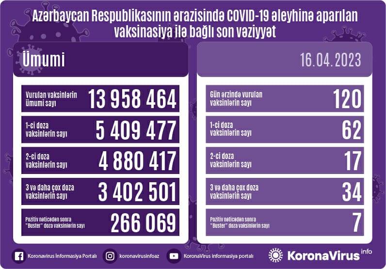 Azərbaycanda son sutkada koronavirus (COVID-19) əleyhinə 120 vaksin vurulub.