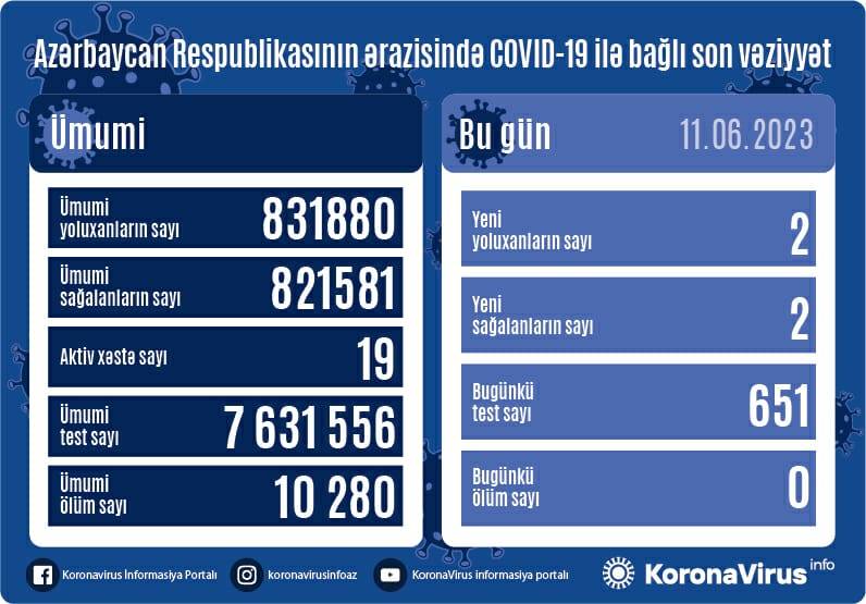Azərbaycanda koronavirus infeksiyasına 2 yeni yoluxma faktı qeydə alınıb, 2 nəfər müalicə olunaraq sağalıb.