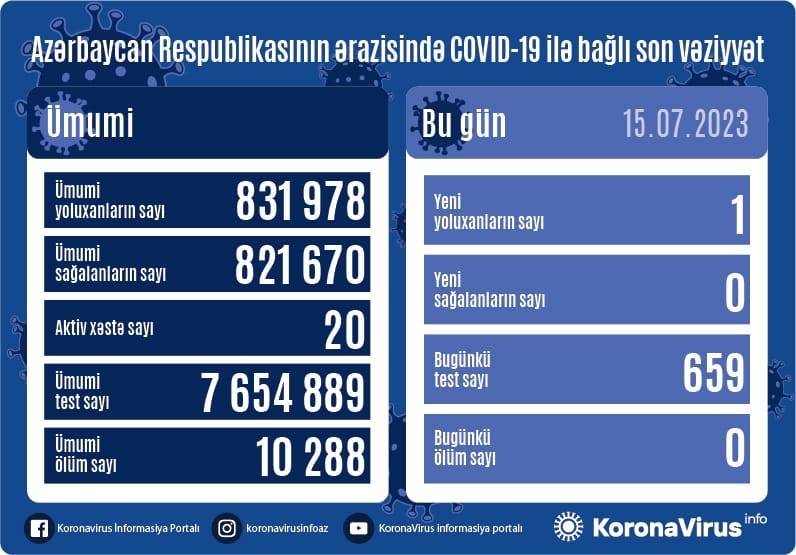 Azərbaycanda son sutkada koronavirus infeksiyasına 1 yeni yoluxma faktı qeydə alınıb.
