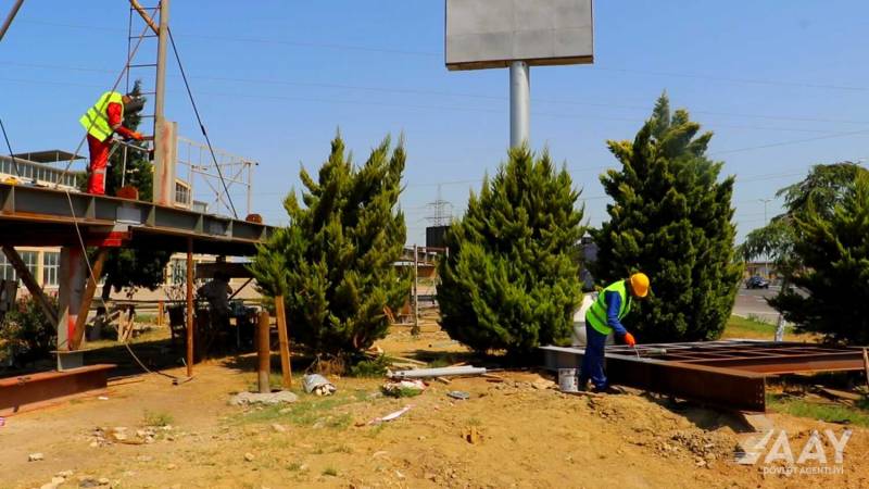 Hazırda layihə üzrə keçid dayaqlarının üzlənməsi və platformanın quraşdırılması işləri aparılır.