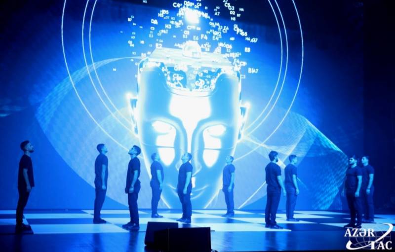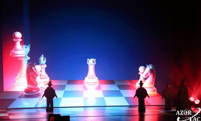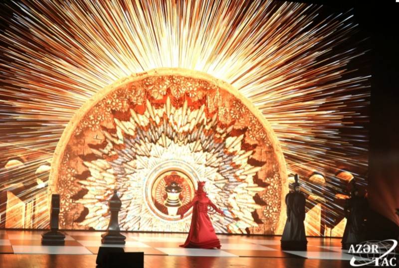 Əvvəlcə səhnəyə şahmat xanaları gətirilib. Şahmat fiqurlarının formasında paltar geyinmiş personajların ifasında maraqlı səhnəcik təqdim olunub. Ardınca Dövlət Himni səsləndirilib.