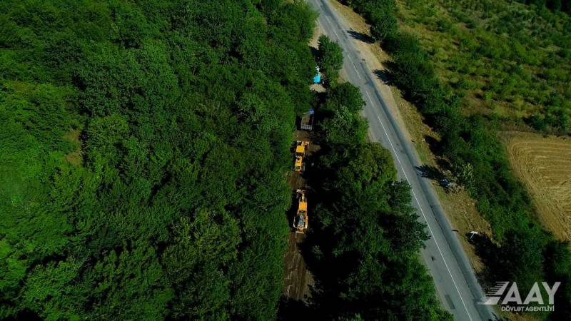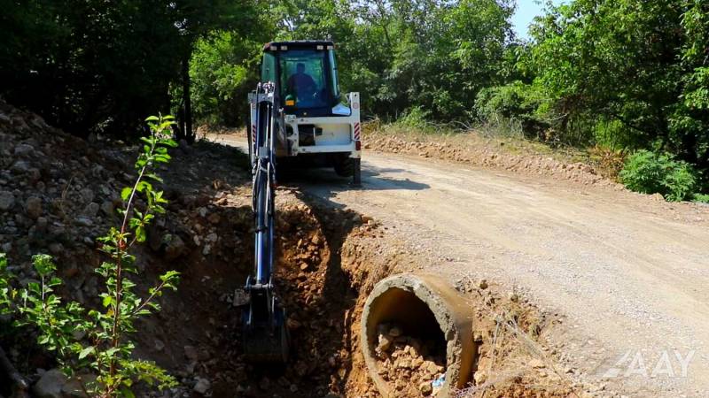 Görülən işlər çərçivəsində yolboyu suların ötürülməsi məqsədilə mövcud dəmir-beton borular bərpa olunaraq, zəruri olan yerlərdə müxtəlif diametrli yeni boruların tikintisi işləri aparılıb.
