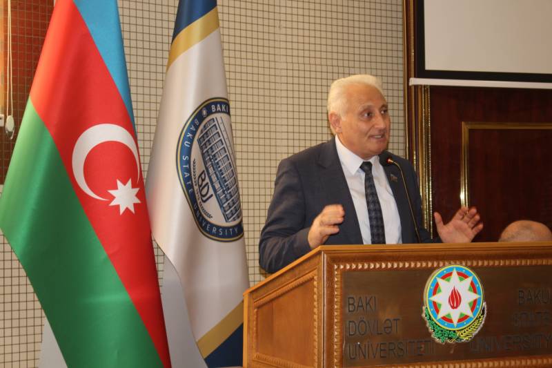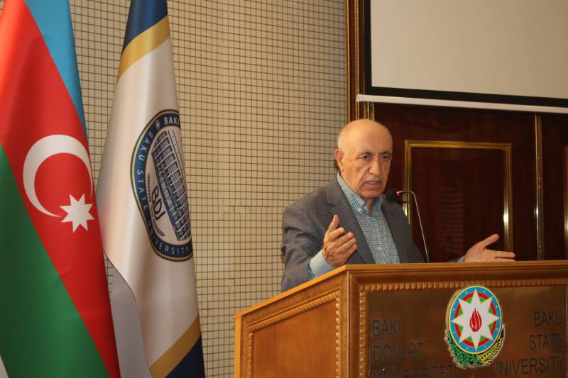 Sonda çıxış edən Beynəlxalq münasibətlər kafedrasının müdiri Ağalar Abbasbəyli qeyd edib ki, XX əsrin axırlarında yenidən müstəqillik qazanan Azərbaycan Respublikasının mövcudluğu və bu gün dünyanın sürətlə inkişaf edən dövlətlərindən birinə çevrilməsi xalqın haqlı olaraq ümummilli lider hesab etdiyi Heydər Əliyevin tarixi və misilsiz fəaliyyətinin nəticəsidir. Əsl lider məhz sadaladığımız bu xüsusiyyətlərə malik olaraq, bunlardan xalqın və dövlətin maraqları naminə müdrikcəsinə, düşünülmüş şəkildə və siyasi uzaqgörənliklə istifadə edir, öz ölkəsini hərtərəfli inkişaf etdirir, milli dövlətçilik tarixinə yeni-yeni şərəfli səhifələr yazır. Ümummilli liderimizin alternativi olmayan düşünülmüş daxili və xarici siyasəti bu gün Onun siyasi varisi, Heydər Əliyev siyasi məktəbinin layiqli yetirməsi və davamçısı Azərbaycan Respublikasının Prezidenti İlham Əliyev tərəfindən uğurla davam etdirilir.