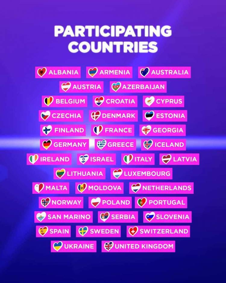 Avropa Yayımçılar İttifaqı “Eurovision 2024” beynəlxalq mahnı müsabiqəsində iştirak edəcək ölkələrin siyahısını açıqlayıb.