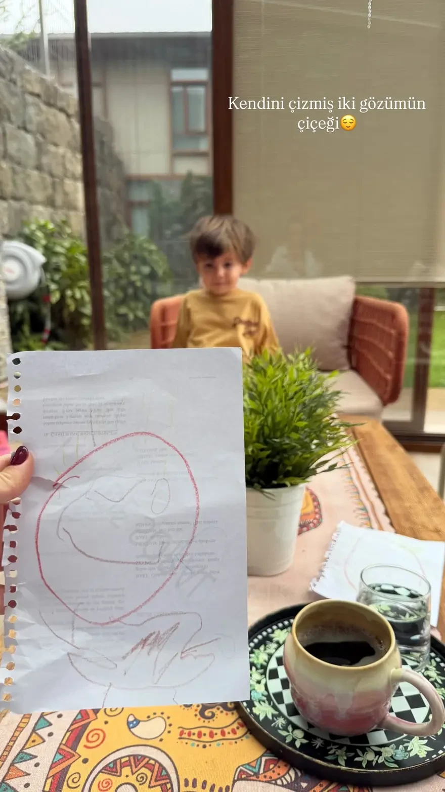 Hande Soral, oğlu Ali'nin çəkdiyi rəsmi izləyiciləri ilə paylaşıb.