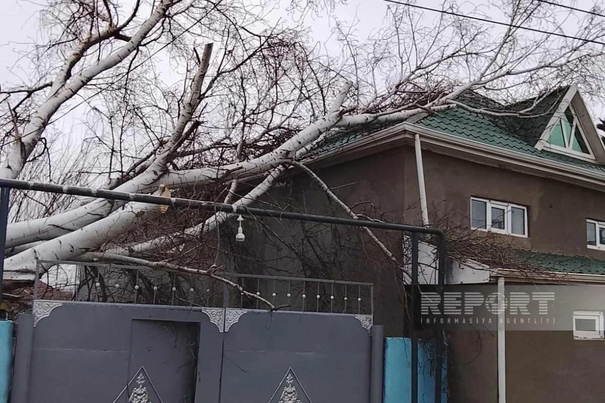 Ağaclardan biri evin üzərinə düşüb və şəxsi tikilinin damına ziyan dəyib.
