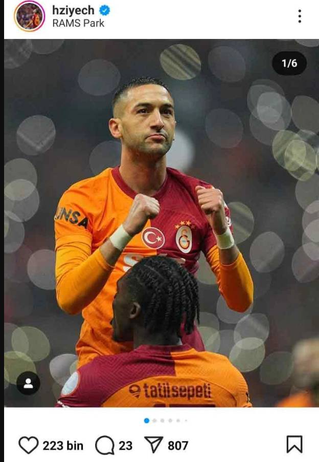 "Qalatasaray"ın son matçlarında göstərdiyi performansla diqqət çəkən mərakeşli ulduz Hakim Ziyeç sosial şəbəkədə paylaşım edib.